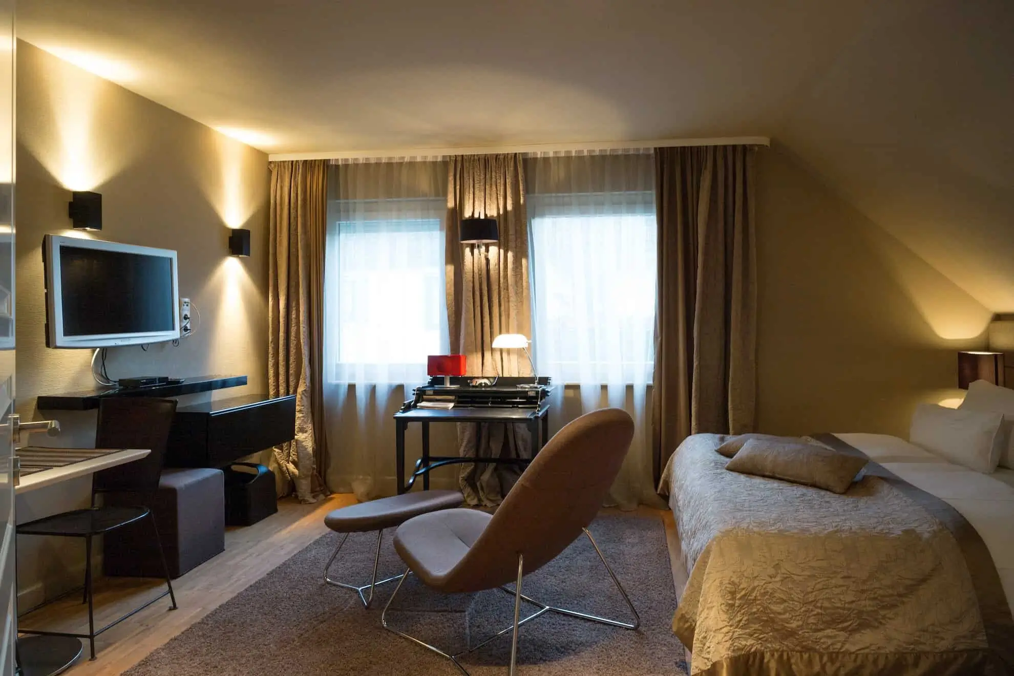 Unsere 90 Zimmern und Suiten sowie unsere schönen Apartments haben wir für Sie individuell und hochwertig mit viel Liebe zum Detail gestaltet. Keines gleicht dem anderen. Ganz gleich ob designorientiert, elegant oder klassisch – Sie haben die Wahl in den Kategorien S, M, L und XL.. Wir sind bis 24 Uhr für Sie da. Es ist also kein Problem, wenn es bei Ihrer Anreise mal etwas später wird.