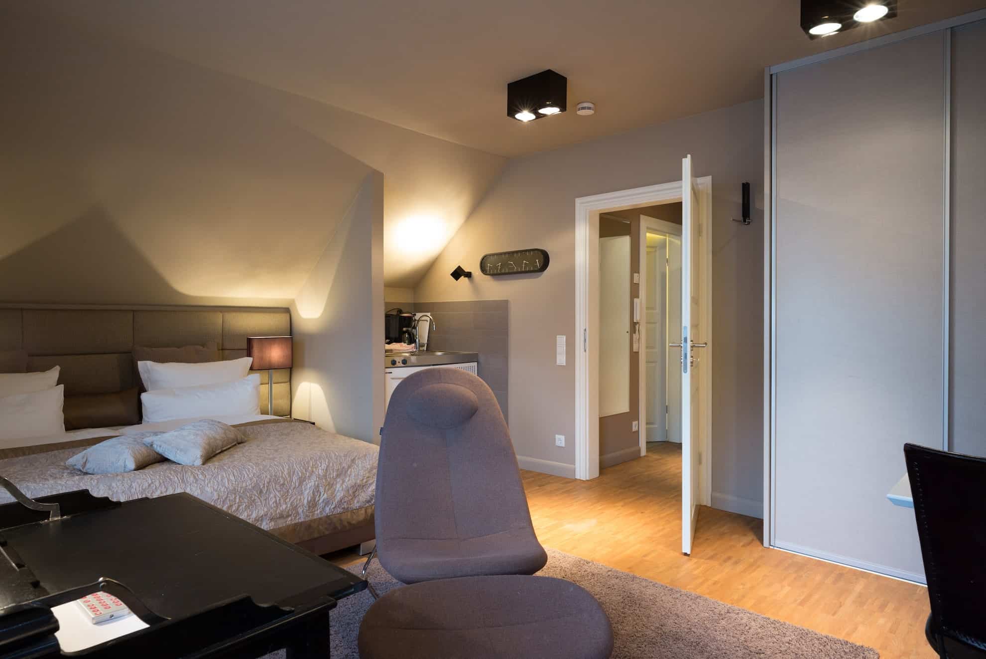 Unsere 90 Zimmern und Suiten sowie unsere schönen Apartments haben wir für Sie individuell und hochwertig mit viel Liebe zum Detail gestaltet. Keines gleicht dem anderen. Ganz gleich ob designorientiert, elegant oder klassisch – Sie haben die Wahl in den Kategorien S, M, L und XL.. Wir sind bis 24 Uhr für Sie da. Es ist also kein Problem, wenn es bei Ihrer Anreise mal etwas später wird.